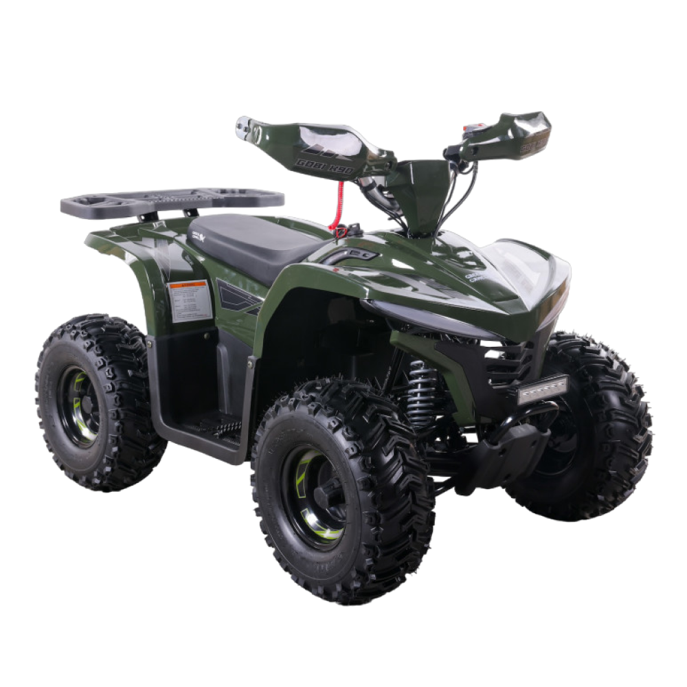 Электроквадроцикл GreenCamel Гоби K90 (48V 750W R7 Дифференциал) Tao LUX Зеленый - это великолепный выбор для молодых авантюристов в возрасте от 5 до 10 лет. С мощностью в 750 Ватт, этот квадроцикл способен развивать скорость до 35 км/ч, предоставляя вашему ребенку незабываемые моменты радости и веселья.