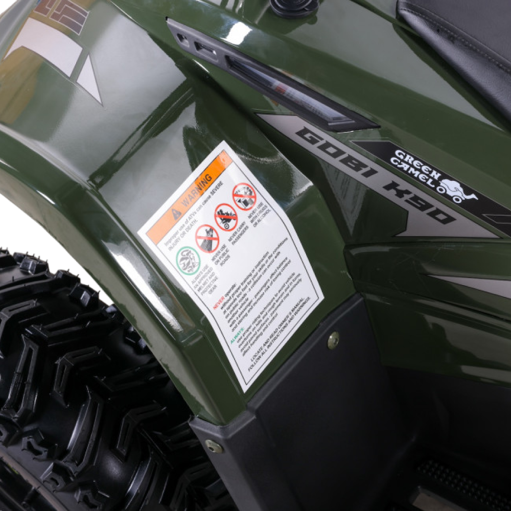 GreenCamel уделяет особое внимание безопасности, поэтому Гоби K90 оснащен дисковыми гидравлическими тормозами. Эти тормоза обеспечивают превосходное тормозное действие, что позволяет вашему ребенку уверенно и безопасно управлять квадроциклом.