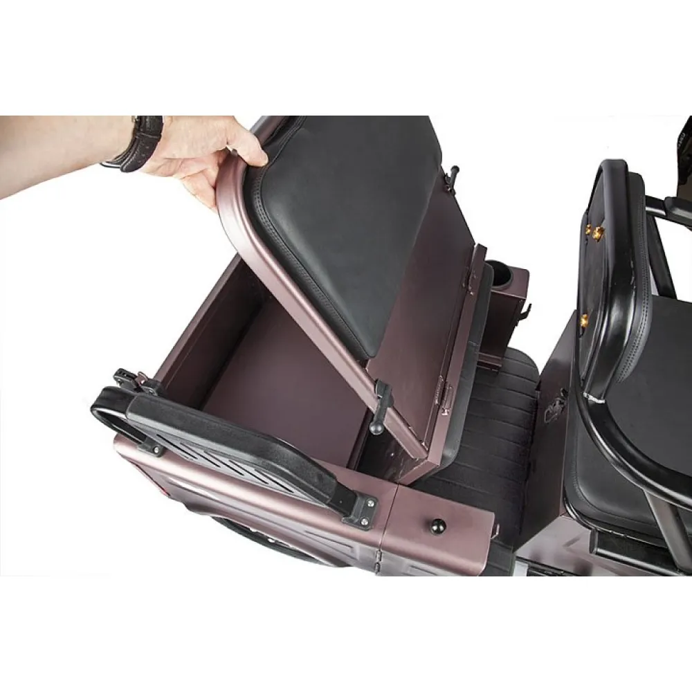 Мягкие комфортные трансформирующиеся сиденья – изюминка модели, благодаря которой трицикл стал популярным и быстро раскупаемым. Также трицикл оснащен необходимым функционалом для безопасного передвижения в ночное время.