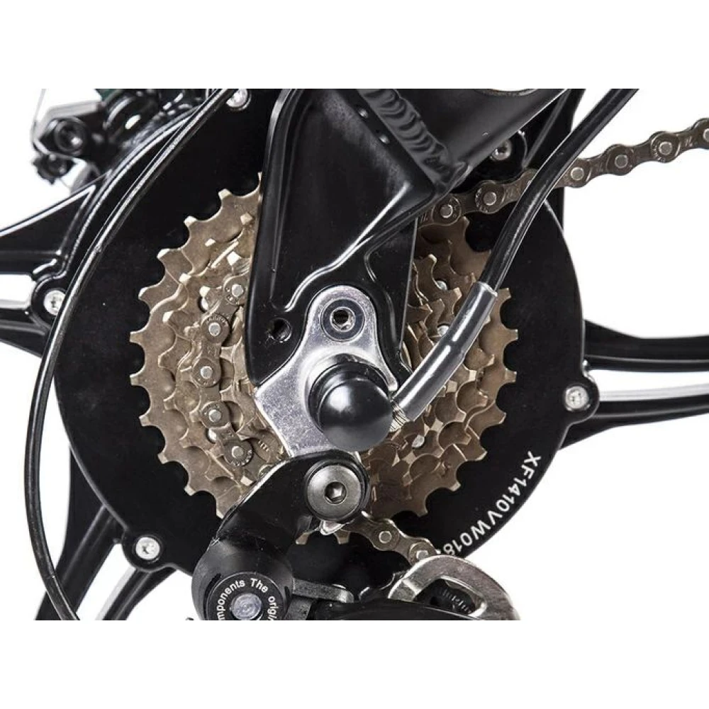 Скоростные характеристики (35 км/час) и максимальный пробег до 50 км достигается благодаря мощному электродвигателю (500 Вт) и емкому аккумулятору (10А*ч), время полной зарядки которого составляет 5-6 часов. 6-скоростная трансмиссия переключается с помощью половинчатой ручки, дает возможность самостоятельного выбора режима.