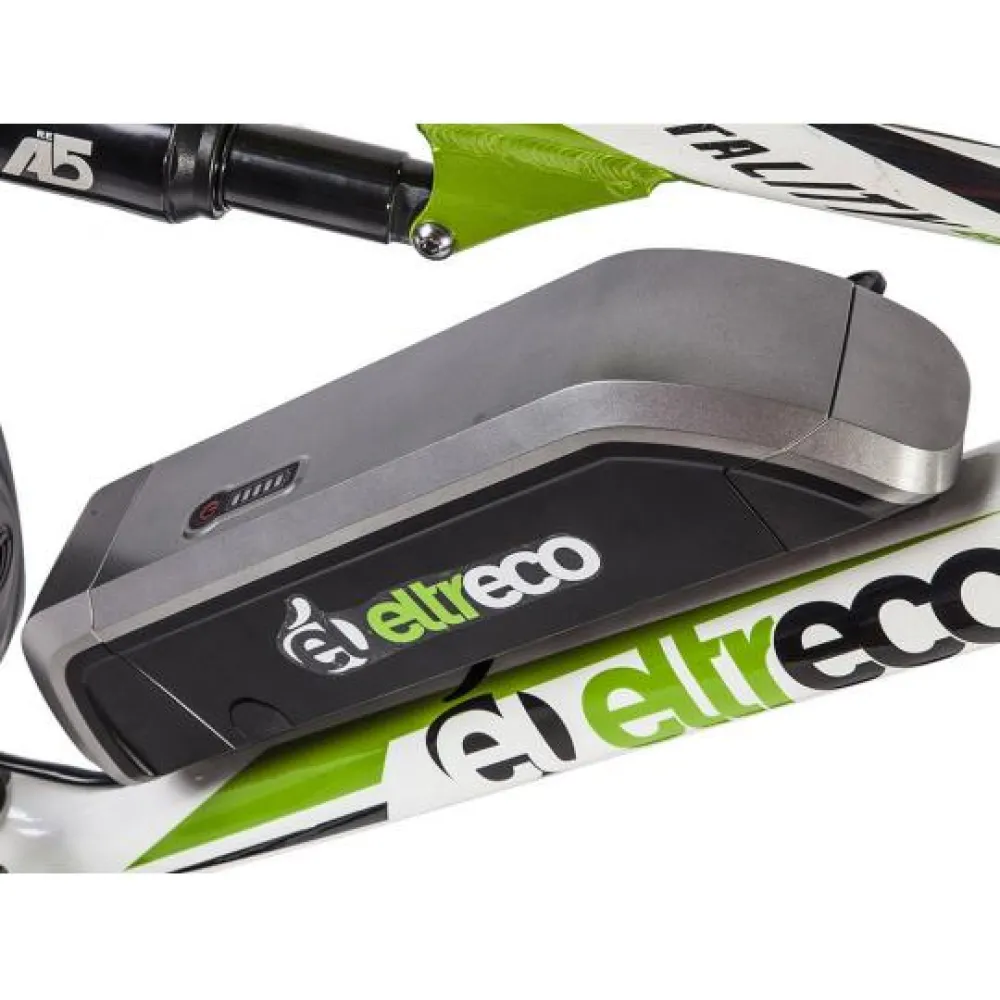 Велосипед Eltreco Vitality ES 600 оборудован редукторным двигателем мощностью 350 Вт, он дает равномерное ускорение и экономит энергопотребление. Электровелосипед развивает максимальную скорость 35 км/ч. Тормозная система дисковая, позволяет маневрировать в дорожном потоке. Литий-ионный аккумулятор емкостью 11.6 А*ч, этого хватает на 70 км движения с максимальной нагрузкой. Зарядить батарею можно подключив к сети, через зарядное устройство на 6 часов.