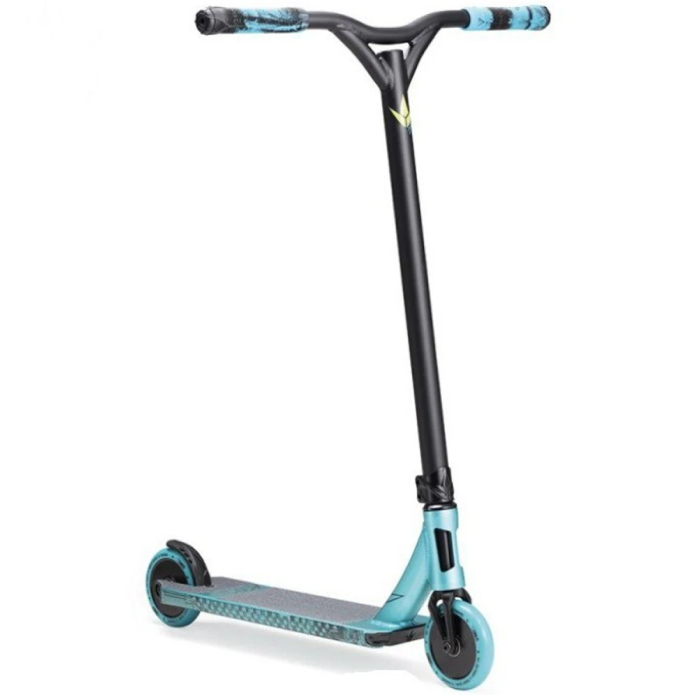 Модель находится в ТОПе продаж этого сезона. Считается лучшей в своем сегменте. Вес техники составляет 3,4 кг. Благодаря использованию при производстве облегченного алюминия проблем с поломкой, деформацией рулевой и других частей при выполнении прыжков и других трюках не возникает. Рулевая часть удобная при применении, высотой 650 мм. Дека – широкая, покрыта антискользящей брендовой шкуркой средней зернистости, исключает соскальзывание стоп и другие непредвиденные ситуации, влекущие к травмированию. 120-мм полиуретановая колесная часть с параметрами жесткости 86А и подшипниками последнего поколения порадовала продвинутых трюкачей максимальным накатом и разгоном. С такими параметрами стать лидером соревнований не составит труда. Для заказа и покупки самоката в ускоренном режиме предлагаем связаться с менеджером интернет-магазина в телефонном или онлайн-режиме.