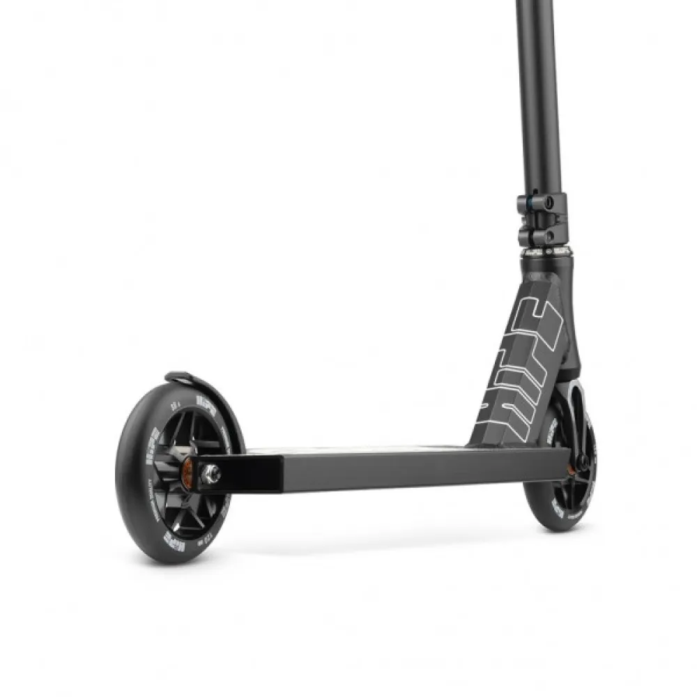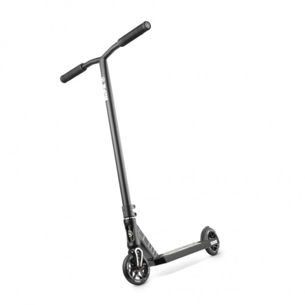 Модель выглядит привлекательно и заметно на фоне других участников трюкачества. Главными достоинствами самоката являются маневренность и легкость управления, благодаря фирменным подшипникам нового типа ABEC-9.120мм полиуретановые колеса малостираемые, долговечные, обещают максимальный разгон. Техника изготовлена из облегченного инновационного алюминия и стали, благодаря которым масса самоката составляет 3,55 кг, а срок службы - продолжительный. Высота руля – комфортная для взрослого пользователя, составляет 650мм.