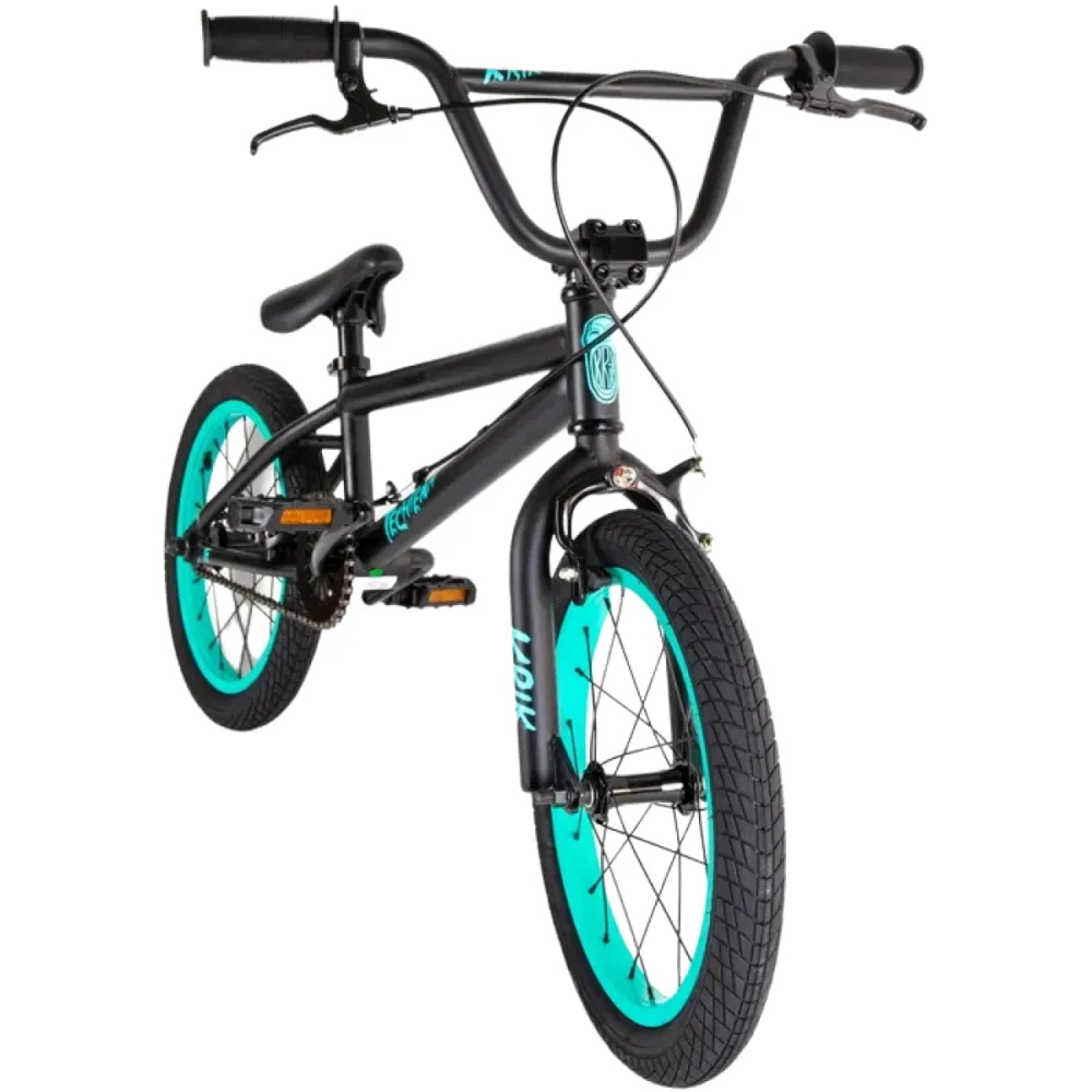 Техника имеет небольшой вес (10 кг), оснащена 16-дюймовыми колесами и аналогичной рамой. Модель обустроена пластиковыми удобными педалями (1/2 дюйма), седлом из эко-кожи, повторяющим анатомические части тела, снимающим напряжение позвоночника, минимизирующим риск травмирования. Безопасность ездока обеспечена профессионализмом, передней и задними клещевыми тормозами, удобной рулевой частью. Удобные прорезиненные грипсы 150 мм, TRP минимизируют риск соскальзывания рук при выполнении трюков.