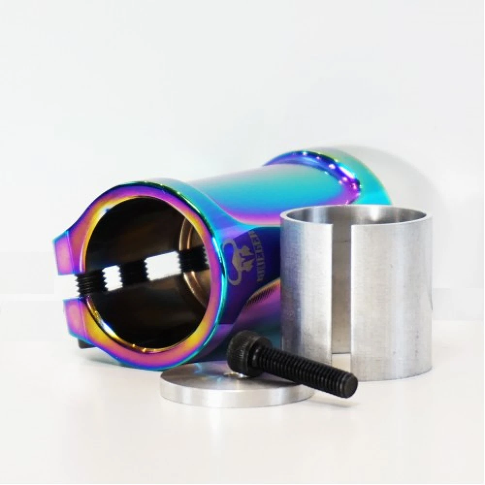 Хомут Krieger для трюковой модели самоката SCS KRC-002G в цвете бензин – изделие в современном цветовом оттенке выглядит фантастически. Технические параметры подтверждают брендовость и долговечность продукции.